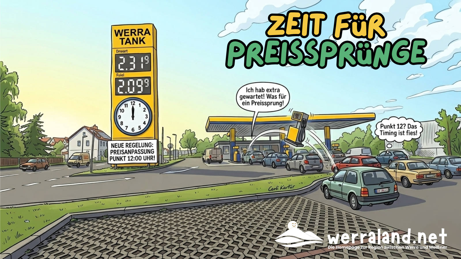 Wer glaubte, die Zeitmessung sei eine Erfindung der Schweizer, der war noch nie mittags an einer Tankstelle im Werra-Meißner-Kreis. Hier wird Pünktlichkeit noch großgeschrieben – vor allem, wenn es darum geht, dem Autofahrer pünktlich zum Mittagsläuten die letzten Groschen aus der Tasche zu ziehen.